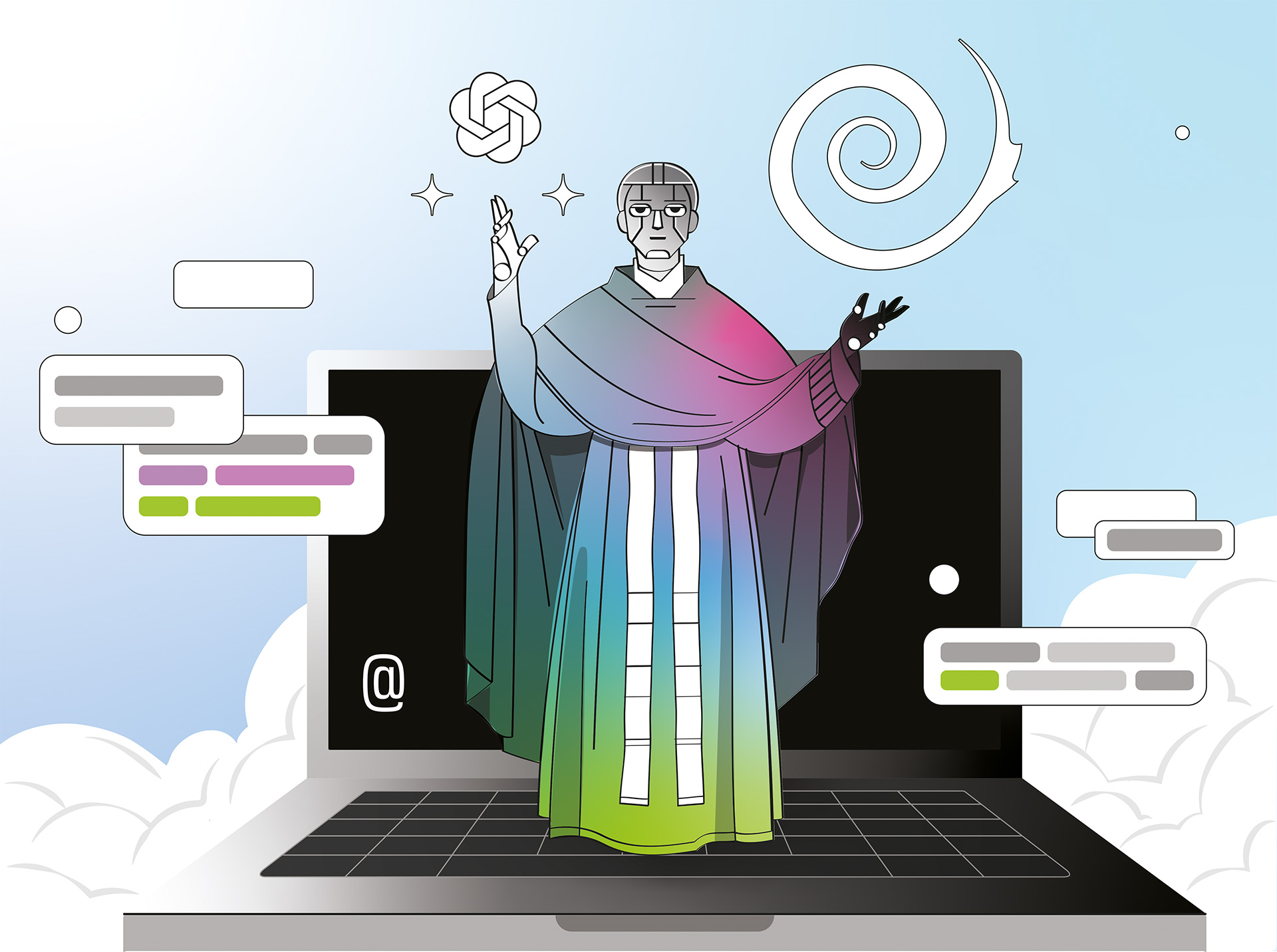 Илустрација Жељка Лончара за текст др Вање Суботић Илузије, делузије и остали знакови упозорења: о опасностима употребе чет-ботова