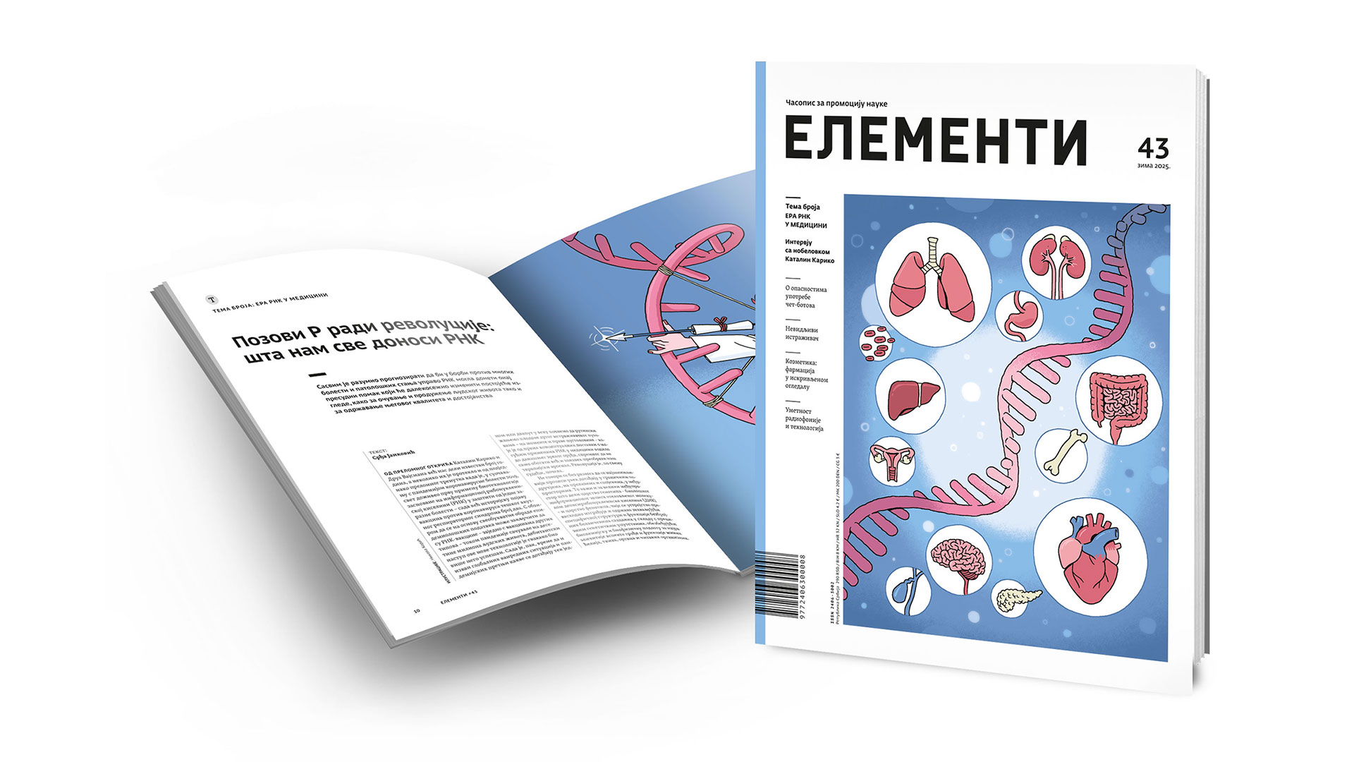 Темат зимског издања Елемената, првог у 2026. години, бави се ером РНК у медицини. Последњих година, РНК технологије изашле су из оквира фундаменталних истраживања и постале конкретан клинички алат, отварајући нове могућности за превенцију и лечење болести кроз прецизно усмеравање ћелијских процеса.